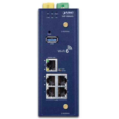 Industrial Dual Band 802.11ax 1800Mbps Wireless Access Point with 5 10/100/1000T LAN Ports.