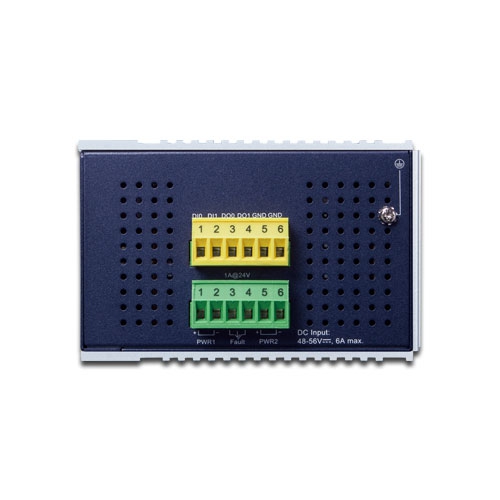| Connector | Removable 6-pin terminal block for power input Pin 1/2 for Power 1, Pin 3/4 for fault alarm, Pin 5/6 for Power 2 Removable 6-pin terminal block for DI/DO interface Pin 1/2 for DI 1 & 2, Pin 3/4 for DO 1 & 2, Pin 5/6 for GND |